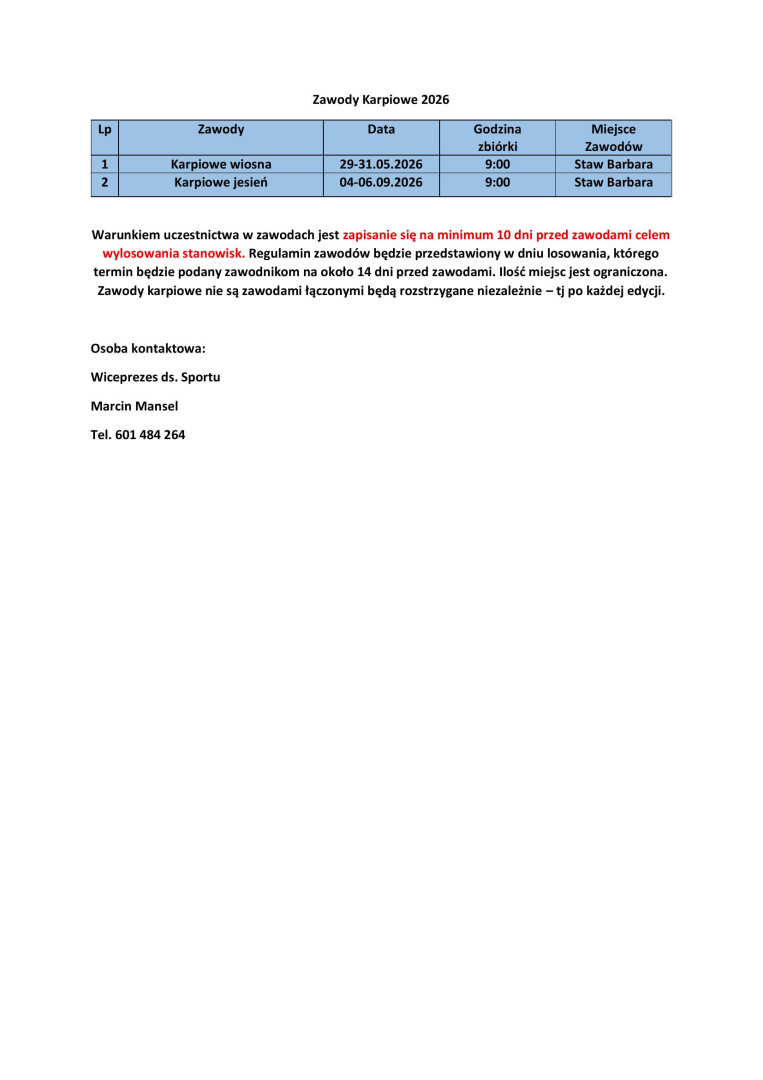 Zawody Koła na 2026 rok